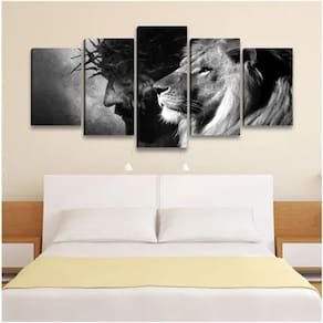 Especificações técnicas: Conjunto 05 Quadros. Tamanho total: 115cm comprimento X60cm altura Peças menores: 02 unidades - 22x35 cm Peças médias: 02 unidades - 22x50 cm Peça central: 01 unidade - 22x60 cm Espaçamento entre as peças: 2 cm Não acompanha Vidro. INSTALAÇÃO A instalação é bem simples, temos também os fixadores especiais com fita Dupla Face que acompanha o produto. Lembre-se de utilizar o espaçamento de 2cm entre as peças, para que as imagens dos quadros se casem perfeitamente e você tenha um produto maravilhoso. LIMPEZA / MANUTENÇÃO Para limpeza, utilize apenas um pano umedecido com água sem produtos químicos para garantir a durabilidade. IMPRESSÃO / ACABAMENTO Nossos quadros são impressos em vinil fosco, aplicado em MDF com espessura de 6mm. Desta forma terá um produto de alta durabilidade e também resistente a umidade. Não necessita de moldura, pois o acabamento das bordas/laterais é feito com a própria imagem impressa, dando visão realista e de profundidade do produto. Conjunto 05 Quadros. Tamanho total: 115cm comprimento X60cm altura Peças menores: 02 unidades - 22x35 cm Peças médias: 02 unidades - 22x50 cm Peça central: 01 unidade - 22x60 cm Espaçamento entre as peças: 2 cm Não acompanha Vidro. Marca: Não Informado