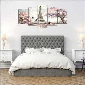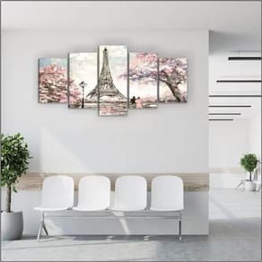 Conjunto 05 Quadros. Tamanho total: 115cm(comprimento)X60cm(altura) Peças menores: 02 unidades - 22x35 cm Peças médias: 02 unidades - 22x50 cm Peça central: 01 unidade - 22x60 cm Espaçamento entre as peças: 2 cm Não acompanha Vidro.
