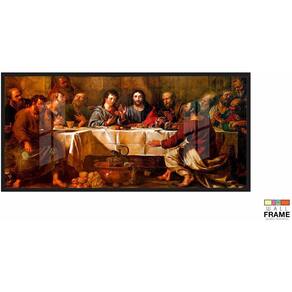 Quadros Decorativos Santa Ceia Catolico Copa Cozinha 130x60 Moldura Preta 2x2