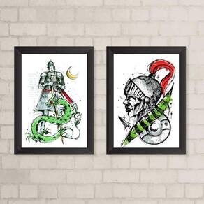 Transforme a decoração do seu ambiente com o Kit 2 Quadros Decorativos Arte São Jorge. Adquira já o seu e desfrute de elegância, estilo e proteção em um único produto.