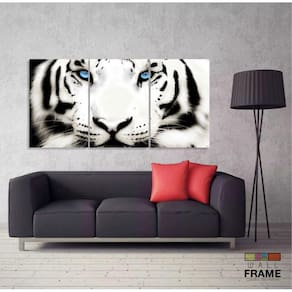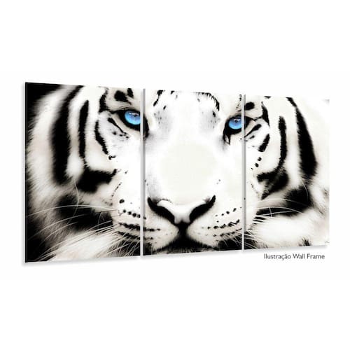 Quadros Decorativos Tigre Branco 120x60 3 peças em Tecido