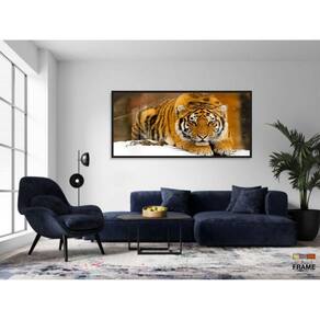 Quadros Decorativos Tigre Neve 130x60 Moldura Preta 2x2