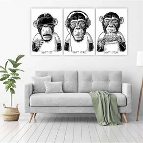 Quadros Decorativos Três Macacos Sábios Dont See Hear Speak 80X60 Kit 3 quadros decorativos mosaicosMaterial:Quadros decorativos produzido em mdf- medidas por peça:1 peça de 80x60cm1 peça de 80x60cm1 peça de 80x60cm Medida total do quadro instalado 180x80cm - informações técnicas: O quadro não precisa de moldura, estão pronto para pendurar na parede. São feitos em adesivos fosco e impressos em alta qualidade. Aplicado em mdf com espessura de 3mm. Não é necessário furar a parede para instalação, pois, enviamos fitas 3m com grande poder adesivo para facilitar a instalação. É necessário na hora da instalação posicionar o quadro em 1cm de largura entre eles para melhor qualidade de visualização.- instalação:Limpe o local que vai ser instalado o quadro com um pano úmido, após secar o local, visualize comoVai ser o alinhamento, e retire a proteção da fita dupla face parte verde da fita e pressioneNo lugar desejado para a fixação.- limpeza após fixação:A limpeza pode ser realizada apenas com um pano seco macio, se desejar pode ser úmidoPorém sem conter álcool ou produtos químicos.