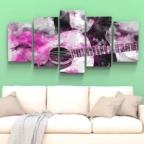 Quadros Decorativos Violão Rosa Musical Sala Quarto