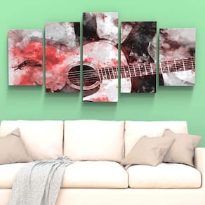 Quadros Decorativos Violão Vermelho Musical Sala