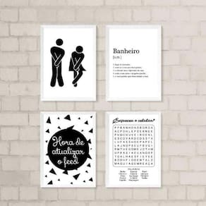 Não deixe suas paredes vazias e sem graça. Adquira já o Kit 4 Quadros Divertidos Para Banheiro 24X18Cm - Com Vidro e transforme seu ambiente de forma criativa e descontraída.