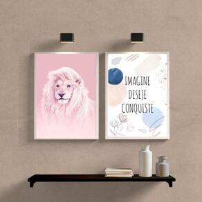 Kit 2 Quadros Leão Rosa Imagine Deseje Conquiste 45X34Cm Renove a decoração do seu ambiente com o Kit 2 Quadros Leão Rosa Imagine Deseje Conquiste. Com moldura de madeira branca, esses quadros são perfeitos para decorar qualquer cômodo da sua casa, como quarto, sala, cozinha, escritório, área gourmet e muito mais. Cada peça possui as dimensões de 45x34cm A3 , ideal para preencher suas paredes vazias com estilo e personalidade. O material do papel é papel fotográfico brilhante de altíssima resolução, garantindo uma imagem nítida e de qualidade. Além disso, os quadros são acompanhados de uma película de acetato para proteção da imagem. Os quadros são embalados de forma segura com plástico bolha com camada dupla, garantindo que cheguem até você em perfeitas condições. E para facilitar a instalação, os quadros já vão acompanhados de penduradores, bastando apenas um martelo e um prego. Se preferir, você também pode utilizar uma fita dupla face de alta qualidade para fixá-los. A limpeza dos quadros é simples e prática. Basta utilizar um pano seco ou um espanador para remover a poeira e manter a sua aparência sempre impecável. Especificações técnicas: - Kit com 2 quadros - Título: Leão Rosa Imagine Deseje Conquiste - Moldura: madeira branca - Medidas: 45x34cm A3 - Material do papel: papel fotográfico brilhante de altíssima resolução - Acabamento: película de acetato para proteção da imagem - Embalagem: plástico bolha com camada dupla - Penduradores inclusos - : 3 meses Marca: Não Informado