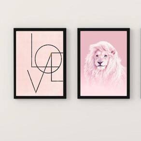 Renove a decoração da sua casa com o Kit 2 Quadros Decorativos Leão Rosa Love 24X18Cm - Com Vidro e deixe os ambientes ainda mais bonitos e personalizados!