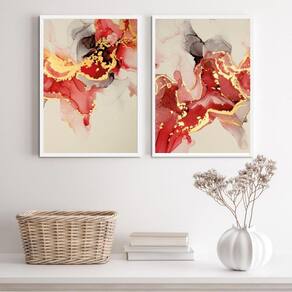 Renove a decoração do seu ambiente com o Kit 2 Quadros Abstratos Mármore Vermelho E Dourado 24X18Cm. Cada peça possui medidas de 24x18cm A5 , ideal para compor a decoração do quarto, sala, cozinha, escritório, área gourmet e muito mais.