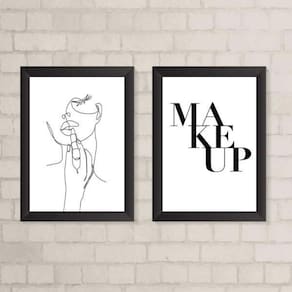 Quadros Minimalistas Makeup 33x24cm c/ Vidro - Kit 2 Peças