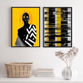 Adquira agora mesmo o Kit 2 Quadros Modernos Preto e Amarelo Mulher Abstrato e transforme a decoração do seu ambiente com estilo e personalidade. Garantia de 3 meses para sua total satisfação.