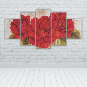 Quadros Mosaico Mdf Floral Flores Buquê Vermelho 2 115X60Cm