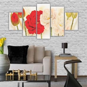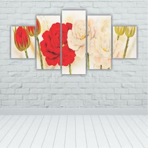 Quadros Mosaico Mdf Flores Vermelho E Branco 115X60Cm