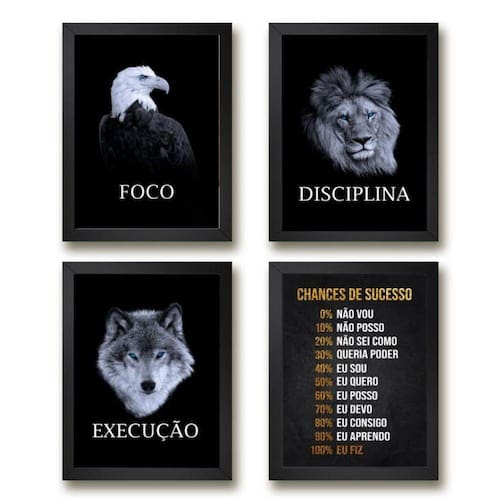 O Kit 4 Quadros Motivacionais Para Empresa 24X18Cm é perfeito para decorar o ambiente de trabalho, trazendo inspiração e motivação para os colaboradores. Com moldura de madeira branca, esses quadros são ideais para serem utilizados em escritórios, salas de reunião, áreas gourmet e muito mais.