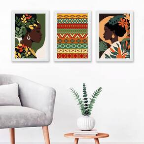 Kit 3 Quadros Decorativos Mulheres Africanas Estampas 33x24cm - com vidro O Kit 3 Quadros Decorativos Mulheres Africanas Estampas é perfeito para quem busca uma decoração autêntica e cheia de personalidade. Com medidas de 33x24cm A4 , cada peça é produzida em papel fotográfico brilhante de altíssima resolução, garantindo uma imagem nítida e detalhada. Os quadros acompanham vidro para proteção da imagem e possuem moldura em madeira maciça de cor preta, o que confere um acabamento elegante e durável. Além disso, cada quadro já vem com um pendurador, facilitando a fixação na parede. Versáteis, os quadros podem ser utilizados em diferentes ambientes, como quarto, sala, cozinha, escritório, área gourmet e muito mais. Com seu design inspirado nas mulheres africanas, eles trazem um toque de cultura e beleza para o seu espaço. Na hora da limpeza, basta utilizar um pano seco ou espanador, como você faria com qualquer móvel da sua casa. É fácil e prático manter seus quadros sempre em perfeito estado. Com de 3 meses, o Kit 3 Quadros Decorativos Mulheres Africanas Estampas é uma opção de decoração de qualidade, que vai transformar qualquer ambiente. Adquira já o seu e deixe suas paredes ainda mais bonitas e personalizadas. Especificações Técnicas: - Título: Kit 3 Quadros Decorativos Mulheres Africanas Estampas - Medidas: 33x24cm A4 - Material do papel: Papel fotográfico brilhante de altíssima resolução - Acabamento: Vidro para proteção da imagem - Moldura: Madeira maciça na cor preta - Acompanha pendurador - Embalagem segura com plástico bolha - : 3 meses 1. Como posso fixar os quadros na parede? R: Os quadros já vêm acompanhados de penduradores, basta utilizar um martelo e um prego para fixá-los na parede. 2. Posso utilizar os quadros em diferentes ambientes? R: Sim, os quadros são perfeitos para decorar quartos, salas, cozinhas, escritórios, áreas gourmet e muito mais. 3. Como devo fazer a limpeza dos quadros? R: A limpeza pode ser feita com um pano seco ou espanador, assim como você faria com qualquer móvel da sua casa. Transforme sua decoração com o Kit 3 Quadros Decorativos Mulheres Africanas Estampas. Adquira já e deixe seu ambiente ainda mais especial e cheio de estilo.