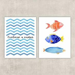 O Kit 2 Quadros Peixes Continue A Nadar 45X34Cm - Com Vidro é perfeito para quem busca uma decoração moderna e descontraída para o ambiente. Com um design único, este conjunto de quadros traz uma imagem encantadora de peixes nadando, trazendo vida e movimento para as paredes.