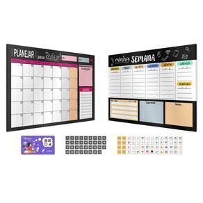Além dos quadros, você receberá 91 imãs variados, que podem ser utilizados para personalizar e tornar seu quadro ainda mais dinâmico e funcional. Também acompanham o produto duas canetas com apagador.