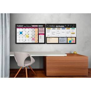 O Quadro Planejador Mensal possui as dimensões de 60x40x1,5cm e é feito de metal. Ele permite que você registre seus compromissos e defina suas metas e objetivos para o mês. Já o Quadro Planejador Semanal tem as mesmas dimensões e funcionalidades, mas é voltado para o planejamento semanal.
