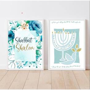 Kit 2 Quadros Decorativos Shabbat Shalom 45X34Cm - Com Vidro