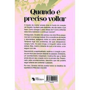 Nova edição de Quando é preciso voltar, um dos grandes best-sellers de Zibia Gasparetto, agora com capa e projeto gráfico atualizados. Ferido pela traição da mulher, Osvaldo toma decisões impensadas em uma tentativa de fugir da realidade, mas acontecimentos inesperados o fazem encarar a verdade e descobrir que não pode seguir adiante sem enfrentar o passado. Ele decide, então, que é hora de aceitar todos os desafios que a vida colocou em seu caminho.
