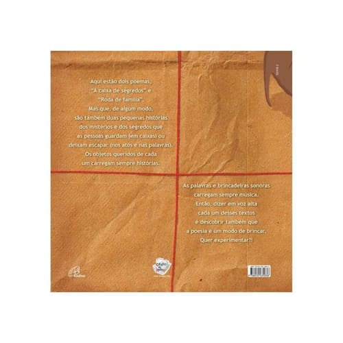 O livro reúne dois poemas "A caixa de segredos" e "Roda de família". Podemos considerá-los duas pequenas histórias que expressam mistérios e segredos que deixamos guardados, muitas vezes em caixas, mas que também deixamos escapar no ímpeto das emoções, seja por meio de ações ou pela fala. E quem não gosta de baús e caixas onde podemos guardar os objetos queridos e os nossos segredos? Em "A caixa de segredos", percebemos que todo mundo é assim, e que virar bicho quando alguém mexe no que é seu é algo mais comum do que se possa imaginar. Já em "Roda de família" viramos criança pequena, aquela que fica daqui pra lá e de lá pra cá, que vai e volta atrás de respostas para um monte de coisas, sem contar no constrangimento a que se sujeita, pois adulto adora fazer gente miúda de moleque de recado. Vê se pode isso? O livro é escrito com letra bastão e indicado para os anos iniciais do Ensino Fundamental 1º ano e 2º ano, com o seguinte trabalho interdisciplinar: Linguagens-Artes.Selecionado Programa Manuel Bandeira de Formação de Leitores Prefeitura de Recife (2014)
