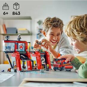 Quartel com Caminhão de Bombeiros - Lego 60414 Conjunto de brinquedo LEGO City Corpo de Bombeiros com Caminhão de Bombeiros para maiores de 6 anos O corpo de bombeiros de brinquedo vem com 5 minifiguras de bombeiro e uma figura de cão bombeiro Inclui um caminhão de bombeiros de brinquedo com uma mangueira, escada modular e acessórios de extintor Salve o progresso, amplie e gire o modelo em 3D com o aplicativo LEGO Builder Dê este conjunto como presente de feriado ou aniversário para maiores de 6 anos As crianças expandam a brincadeira com outros conjuntos vendidos separadamente da linha LEGO City LEGO City é um lugar onde as crianças podem dar liberdade à sua imaginação ilimitada O quartel dos bombeiros neste conjunto de construção de 843 peças tem mais de 32 cm de largura Homologação Inmetro: 00829/2021-BRINQ-1