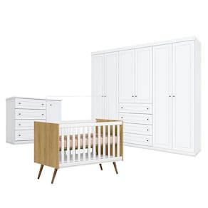 Quarto de Bebê Americano 6 Portas com Berço Americano Q Encanto 3820 Retrô Freijó TOQ Branco Acetinado - Qmovi - Henn