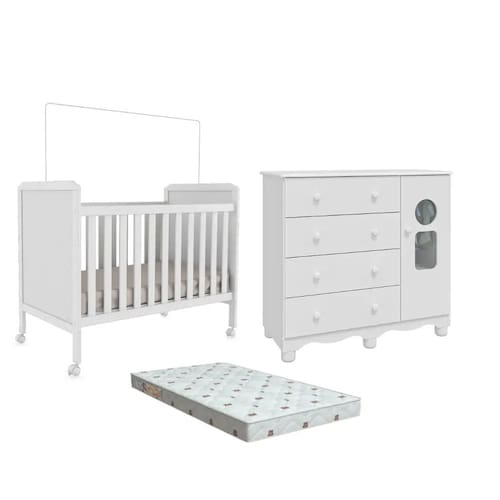O Berço Cloe é um produto padrão americano, fabricado 100% em MDF e possui pintura atóxica. Seu estrado possui altura regulável e é fabricado em MDF e madeira/laminado de madeira. As grades são fabricadas em chapas de 25 e 12 mm. O quadro das cabeceiras é também em chapa de 25 mm. Possui bordas arredondadas e laqueadas, proporcionando maior segurança e uma sensação agradável ao toque.