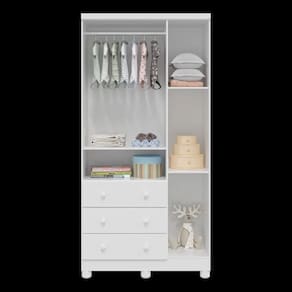 Portas c/ PETG cristal, Puxadores em ABS , Cabideiro metálico,Corrediças metálicas , Pés em ABS inclusos,100% MDF 03 portas;