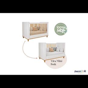 Berço cupcake 100% MDF com 2 grades fixas com Palitos de Madeira, Pés torneados de madeira, Cantos arredondados, Acabamento em pintura UV.