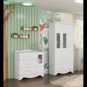 O Armário Clara 3 Portas Lisas Plus é um produto 100% MDF e possui pintura atóxica. Sua estrutura é fabricada em chapa de 12 mm, sendo seu tampo superior em chapa de 15 mm. Possui puxadores em MDF revestido com papel melamínico, cabideiro metálico e gavetas com corrediças telescópicas. Acompanha dois modelos de rodapés que podem ser definidos no momento da montagem.