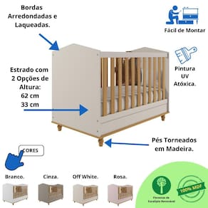 Transforme o quartinho dos pequenos em um espaço encantador com o berço, a cômoda e o roupeiro perfeitos para criar um ambiente lúdico e seguro. Feitos com matéria-prima 100% MDF, esses móveis garantem durabilidade e resistência, além de seguirem as normas de segurança da ABNT e serem certificados pelo INMETRO. Com design charmoso e funcionalidades práticas, como grades laterais fixas, regulagens de altura e gavetas com corrediças telescópicas, esses móveis oferecem praticidade e estilo. O berço ainda se transforma em minicama, garantindo um investimento que acompanha o crescimento dos pequenos. Seja para organizar roupas ou decorar, esses móveis são a escolha ideal para um ambiente infantil completo e acolhedor.