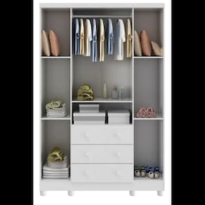 Portas c/ PETG cristal, Puxadores em ABS , Cabideiro metálico,Corrediças metálicas , Pés em ABS inclusos,100% MDF 03 portas;
