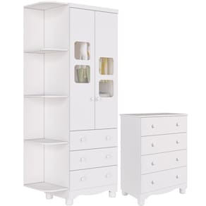 A opção compacta deste conjunto facilita muito a organização do espaço, garantindo o dia a dia perfeito e agradável. Fabricados 100% em MDF, esta coleção de móveis garante conforto e estilo para o quarto do seu pequeno.