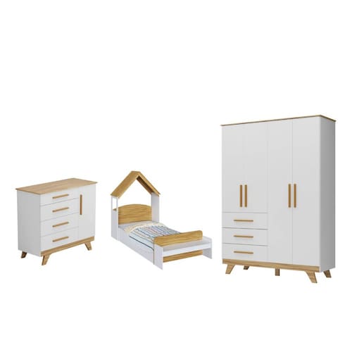 O Kit Casinha é um produto 100% MDF e possui pintura atóxica. Sua estrutura é fabricada em chapa de 12 e 15 mm. Seu designer é divertido e conta também com uma escrivaninha, o Kit Casinha pode ser fixado a parede e em uma cama solteiro da coleção Lua e Sol da Móveis Peroba.