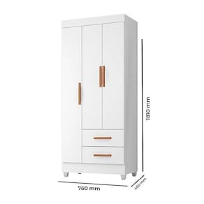 1x Guarda-roupa para Quarto Infantil 3 Portas e 2 Gavetas com Pés Lite Branco Largura: 76 cm Altura: 181 cm Peso: 38 kg Profundidade: 40 cm Necessita Montagem: Sim
