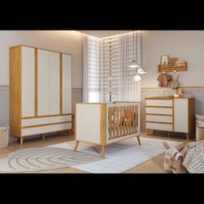 Fabricado em MDF, 04 portas , gavetas com corrediças telescópicas, cantos arrendodados , pés em madeira,pintura atóxica, puxadores cavas, acabamento interno linho, sistema anti tombamento;