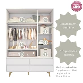 Guarda-Roupa (CxLxA): 138 x 45 x 198 cm