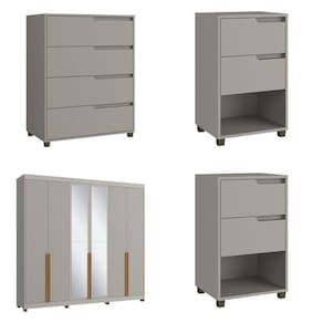 Duas mesas de cabeceira 100% MDF de 15mm, composta por duas gavetas com corrediças teslescópicas, puxadores usinados e nicho. Possui Rodízio: Não Altura do Conjunto: 235 cm Ambiente: null Ambiente Principal: Quarto Cor: Cinza / Marrom Informação Complementar: 1x Roupeiro Newton 6 Portas de Giro Puxador Marrom 100% Mdf CInza/Cinza/Marrom Largura: 250 cm Altura: 235 cm Peso: 240,4 kg Profundidade: 54 cm Necessita Montagem: Sim