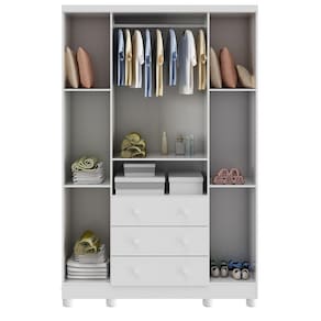 Fabricado em MDF;Cabideiro metálico;Puxadores plásticos;Corrediças metálicas;04 Portas , 02 portas centrais com PETG cristal;