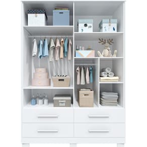 01 Guarda Roupa 04 portas Fabricado em MDF; Corrediças telescópicas; cabideiro aluminio; puxadores em MDF revestido; acabamento interno texturado linho; ótimo espaço interno;