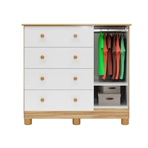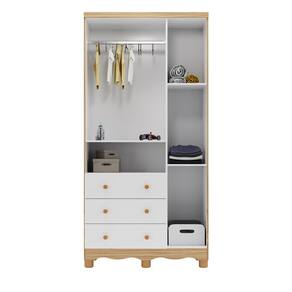 O Armário Júnior New 3 Portas é um produto 100% MDF e possui pintura atóxica. Sua estrutura é fabricada em chapa de 12 mm e seus pés são injetados em plástico de alta resistência. Os puxadores são também em plástico. Os cabideiros são metálicos e suas gavetas possuem corrediças apoiadas metálicas. Acompanha dois modelos de rodapés que podem ser definidos no momento da montagem.