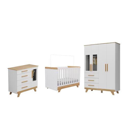 O Berço Retrô é um produto padrão americano, fabricado 100% em MDF e possui pintura atóxica. Seu estrado possui altura regulável e é fabricado em MDF e madeira/laminado de madeira. As grades são fabricadas em chapas de 25 e 12 mm. Seus pés são usinados em uma peça única de MDF 25 mm. O quadro das cabeceiras é também em chapa de 25 mm. Possui bordas arredondadas e laqueadas, proporcionando maior segurança e uma sensação agradável ao toque. Acompanha suporte de cortinado e possui a opção de transformação em minicama.
