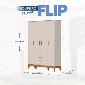 * Produtos desmontados (manual incluso) Acompanha Colchão: Não Altura do Conjunto: 204 cm Ambiente Principal: Quarto de Bebê codigo_ean: 7900288324726 Cor: Areia Fosco Cor do Produto: Areia Fosco Estrado com Regulagem de Altura: Sim Informação Complementar: 1x Guarda-roupa para Quarto de Bebê 4 Portas Flip Areia Fosco Largura: 147 cm Altura: 204 cm Peso: 102,7 kg Profundidade: 44 cm Necessita Montagem: Sim