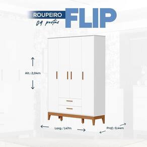 * Produtos desmontados (manual incluso) Acompanha Colchão: Não Altura do Conjunto: 204 cm Ambiente: null Ambiente Principal: Quarto de Bebê Cor: Branco Fosco Estrado com Regulagem de Altura: Sim Informação Complementar: 1x Guarda-roupa para Quarto de Bebê 4 Portas Flip Branco Fosco Largura: 147 cm Altura: 204 cm Peso: 102,7 kg Profundidade: 44 cm Necessita Montagem: Sim