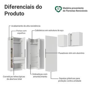 Guarda-roupas: um módulo de 40 cm com uma porta, um módulo de 80 cm com duas portas e um módulo de canto com duas portas