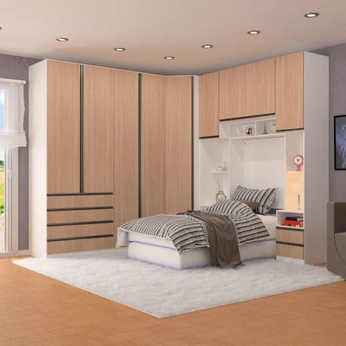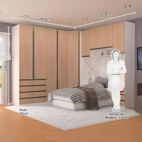 Ambiente composto por: ? 1 Guarda Roupa Modulado Canto Diagonal 1 Porta 6 Prateleiras 83cm Prime Luciane Móveis 236 x 83,8 x 83,8 -Altura x Largura x Profundidade - cm- ? 1 Guarda Roupa Modulado 2 Portas 2 Cabideiros 80cm Prime Luciane Móveis 236 x 80,4 x 56 -Altura x Largura x Profundidade - cm- ? 1 Guarda Roupa Solteiro 2 Portas 4 Gavetas 90cm Prime Luciane Móveis 236 x 90,4 x 56 -Altura x Largura x Profundidade - cm- ? 1 Mesa de Cabeceira Lado Direito 1 Porta 2 Gavetas Prime Luciane Móveis 236 x 40,3 x 45 -Altura x Largura x Profundidade - cm- ? 1 Mesa de Cabeceira Lado Esquerdo 1 Porta 2 Gavetas Prime Luciane Móveis 236 x 40,3 x 45 -Altura x Largura x Profundidade - cm- ? 1 Maleiro Ponte Aérea 2 Portas 97 cm Prime Luciane Móveis 67,2 x 97 x 45 -Altura x Largura x Profundidade - cm- ? 1 Nicho para Ponte Modulado 97cm Prime Luciane Móveis 20,3 x 97 x 27 -Altura x Largura x Profundidade - cm- ? 1 Painel Cabeceira Solteiro 94 cm para Embutir em Nicho Prime Luciane Móveis 90 x 94 x 1,5 -Altura x Largura x Profundidade - cm-