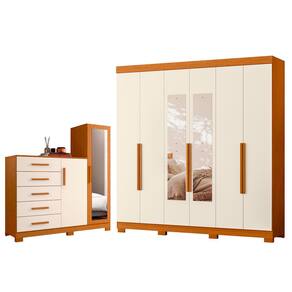 Quarto Completo Guarda Roupa 6 Portas Com espelho Vinci e Cômoda Sapateira New Master