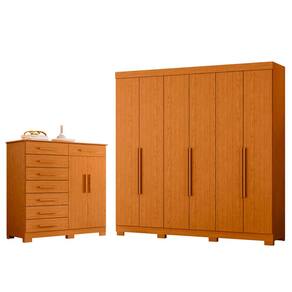 Quarto Completo Guarda Roupa 6 Portas Vinci e Cômoda Sapateira Verona