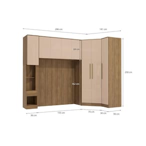 Para quem sempre sonhou com um quarto planejado, o Modulado Adapt da Kappesberg é a escolha certa. Produzido em MDP de 15mm, o que proporciona mais firmeza, robustez e qualidade, o Combo CB1436 é ideal para quem busca otimizar espaço e garantir beleza e funcionalidade no dia a dia. Com 2,30m de altura, 4,87m de largura e 56cm de profundidade, o combo traz soluções funcinais e muito espaço interno, além do guarda-roupa de canto obliquo, que permite composições modernas um aproveitamento perfeito.